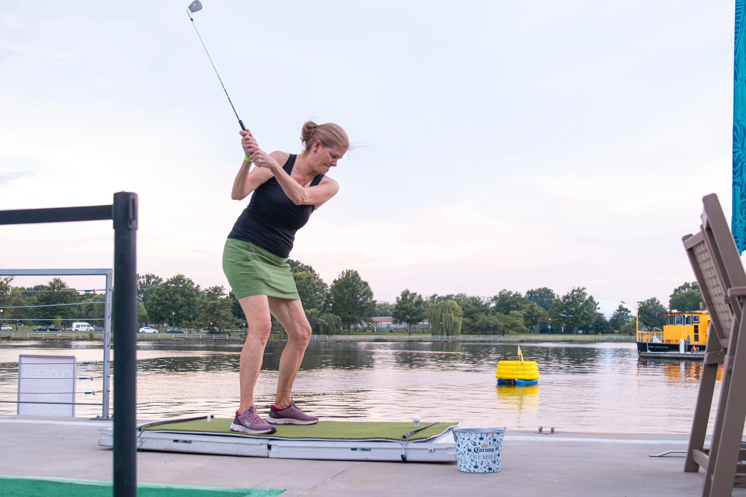 Participants stepped on the edge of the Transit Pier, grabbed a club, and launched ZERO® Biodegradable Golf Balls at a GolfShotBot™ Floating Golf Target positioned 40 yards away in the Washington Channel. The setting was unforgettable, with live music, incredible views, and the gentle splash of a perfect shot.