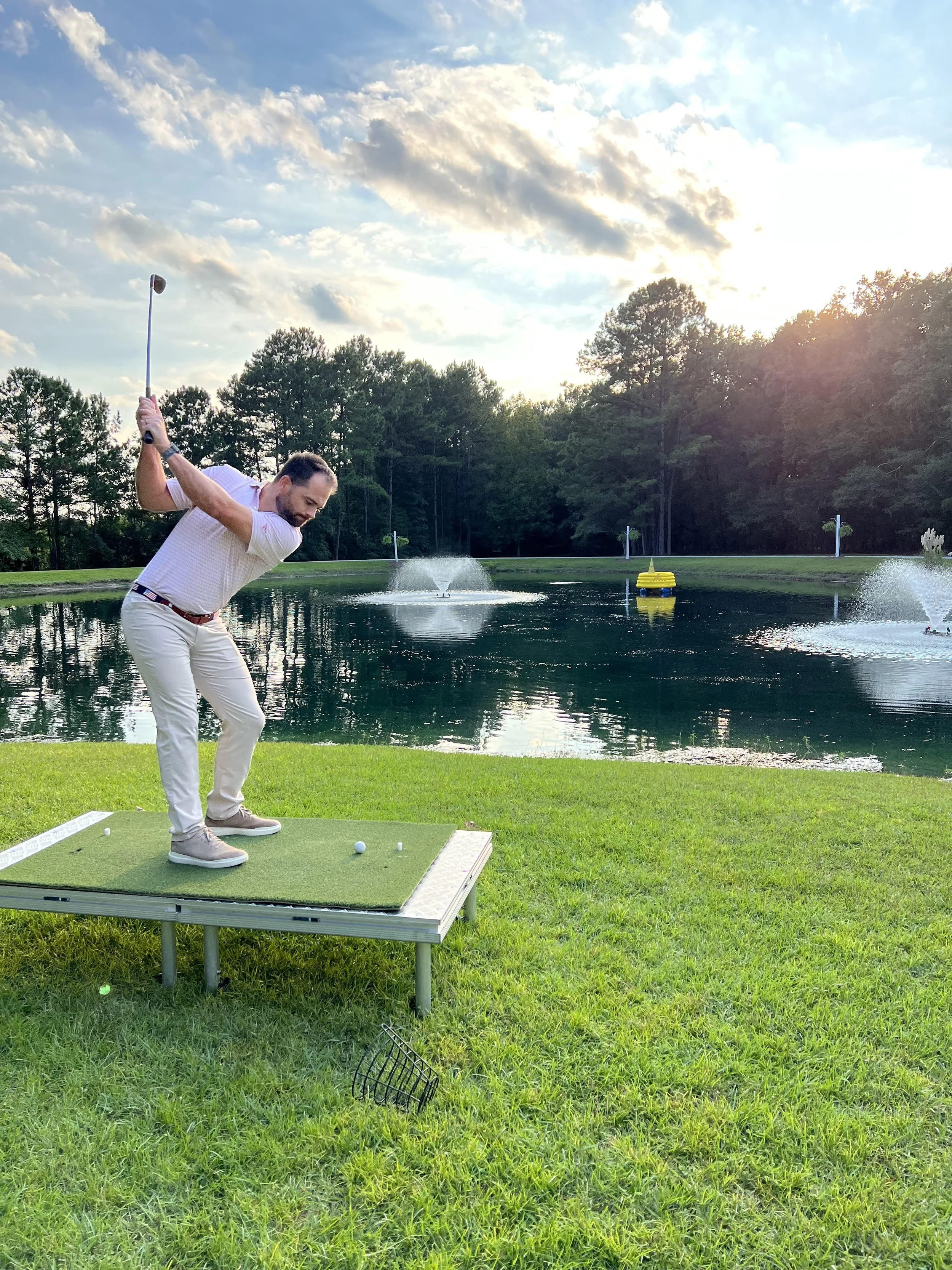 In 2023, we had the pleasure of introducing The Mackey House, a stunning event venue in Savannah, Georgia, to the idea of transforming their picturesque pondside setting into a pop-up waterfront golf driving range. From the moment they saw the potential, they were all in.